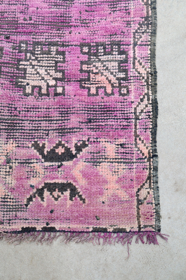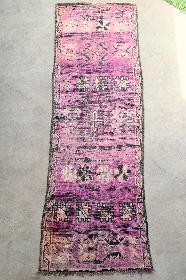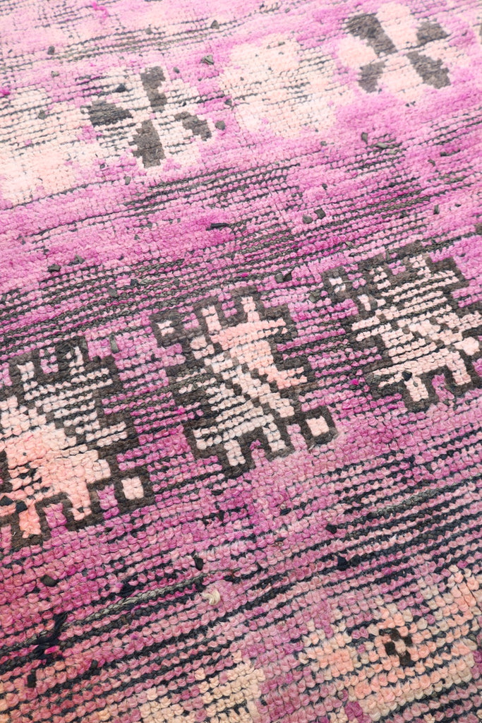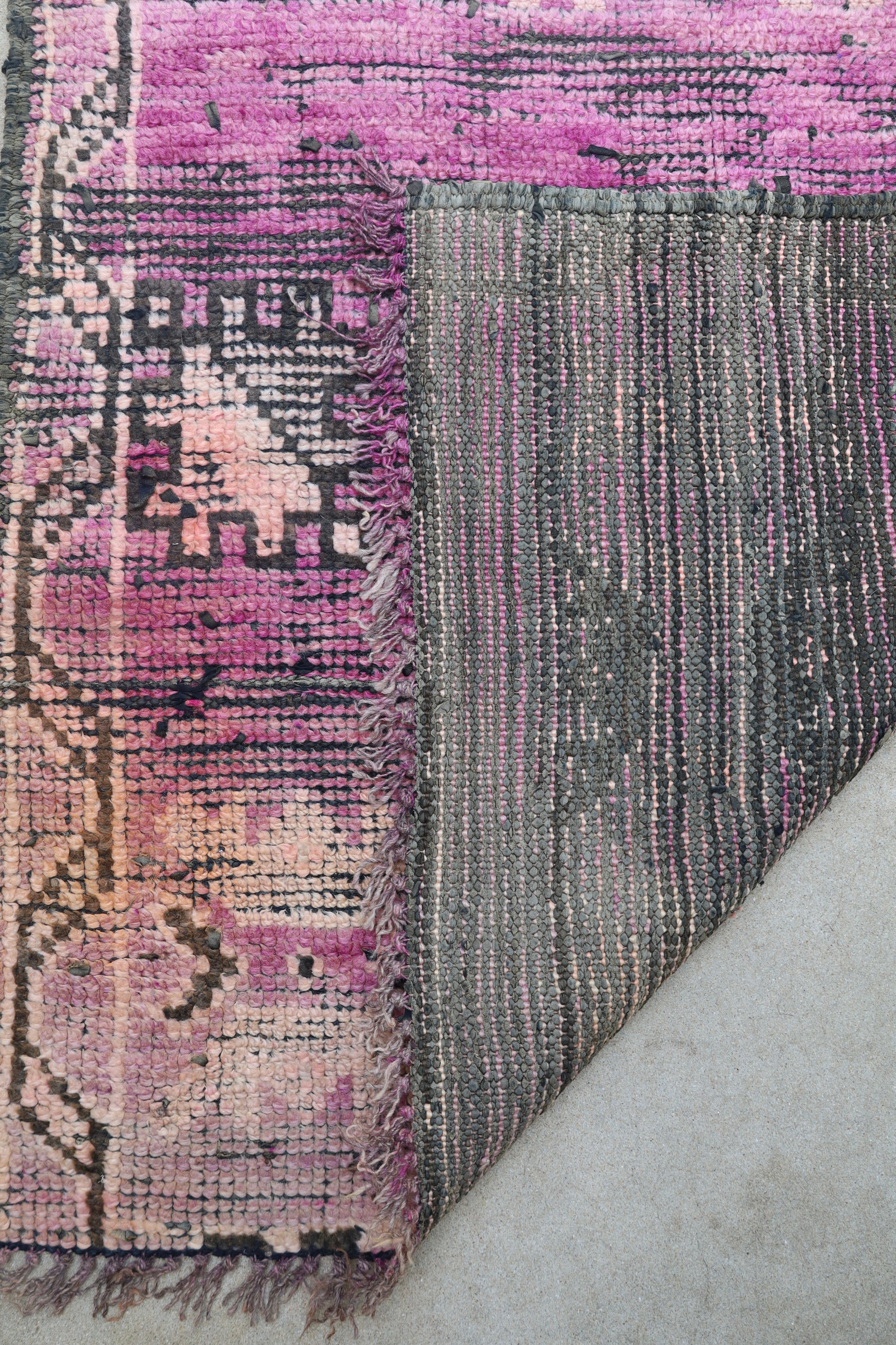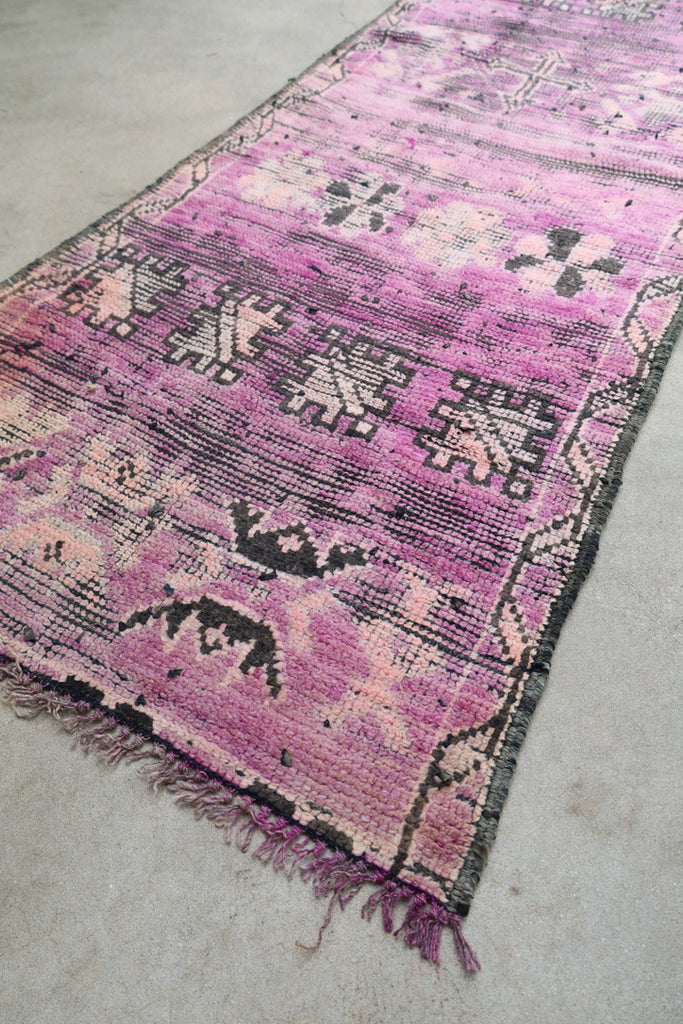 Moroccan vintage runners that are 10 feet or longer are hard to come by, and this rug does not disappoint! Adara was located in the Boujad region, and has a beautiful array of purple and pink tones. It would make a fun accent in a hallway or kitchen!