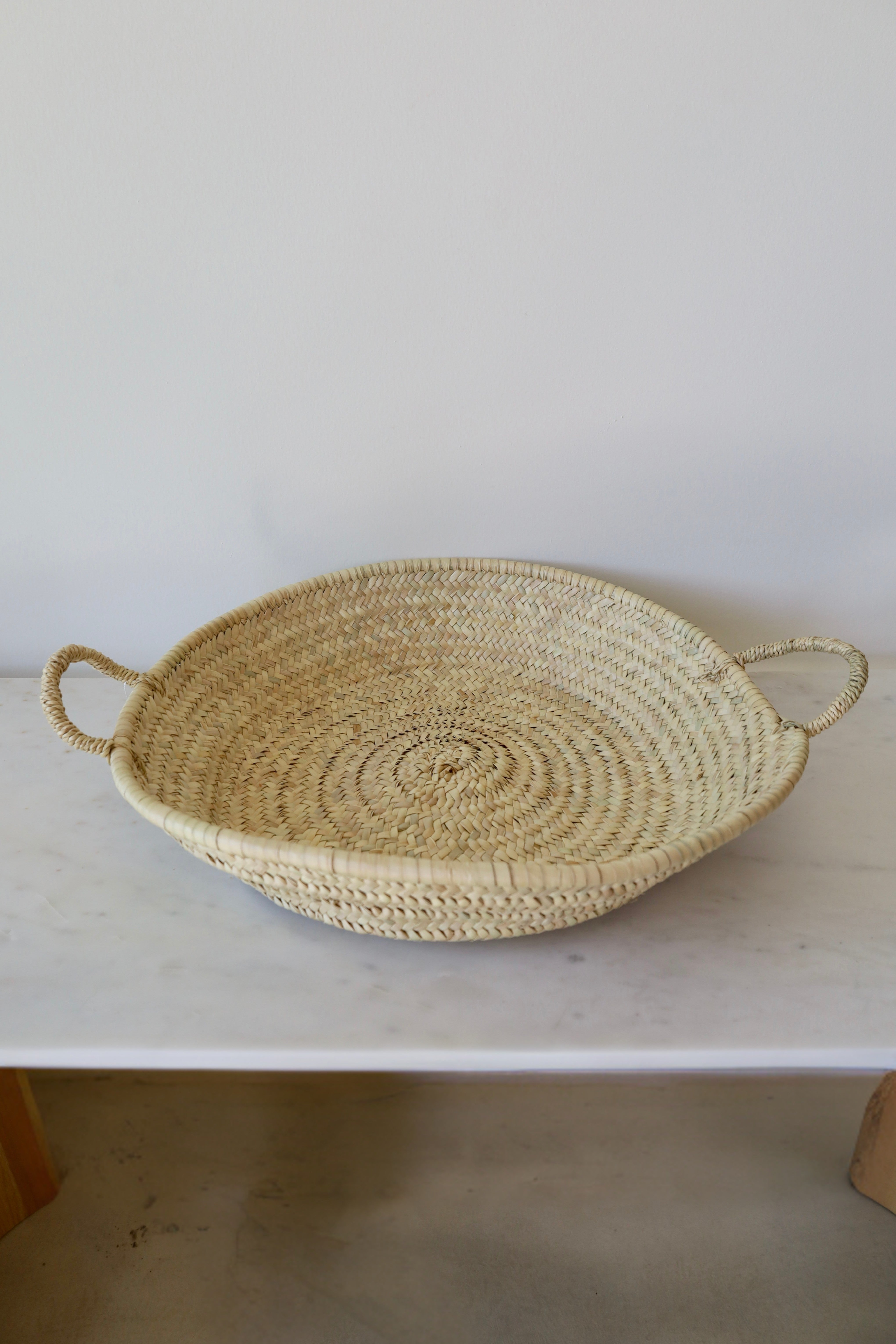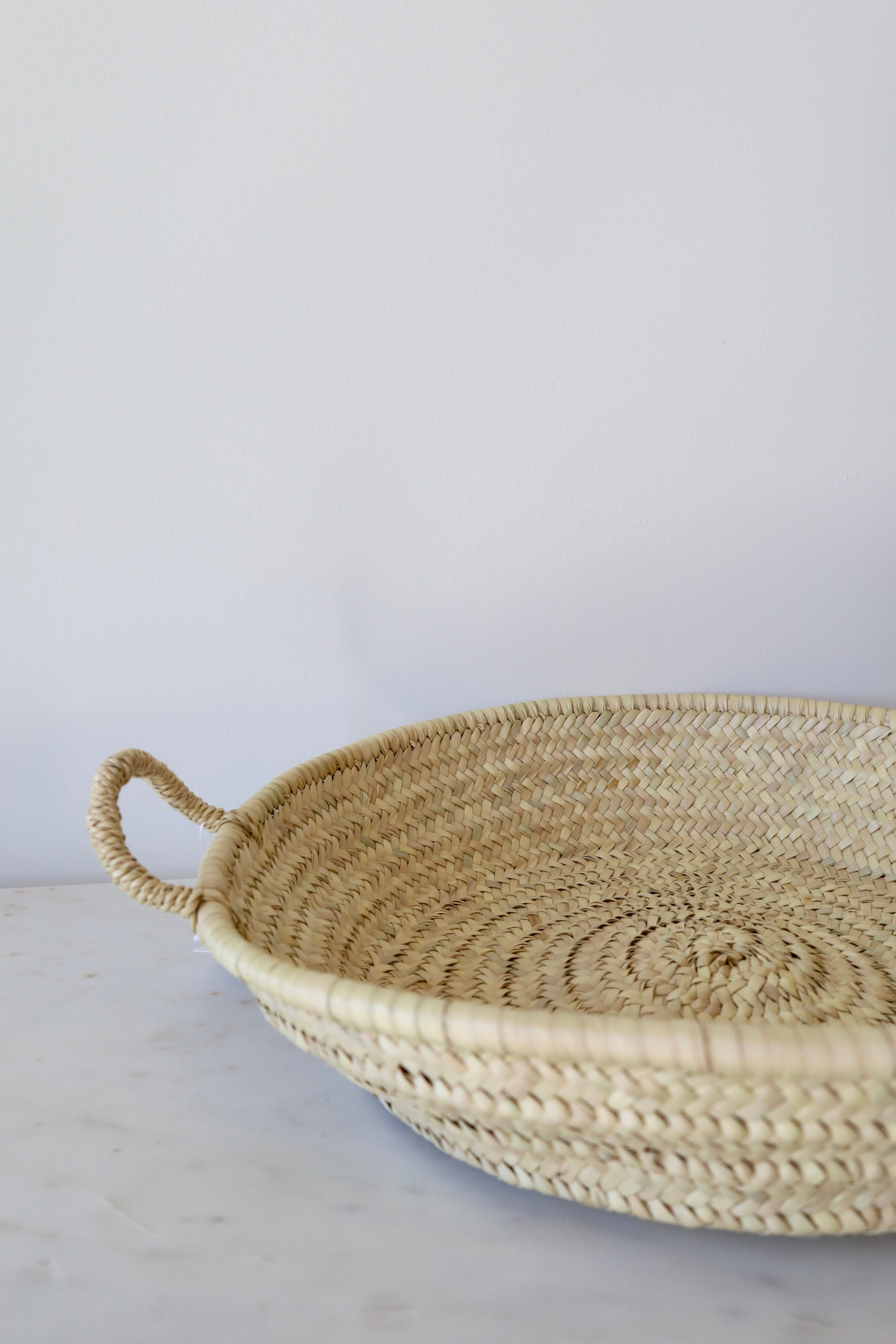 This hand woven tray would be great on a bed or coffee table. Hand selected from the marketplace in Marrakech, this basket is beautifully woven and simple in style.
