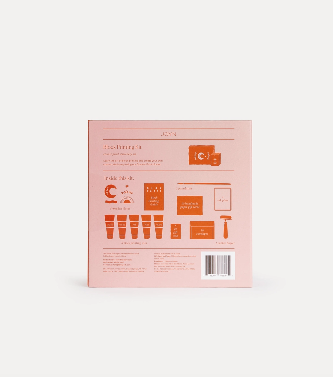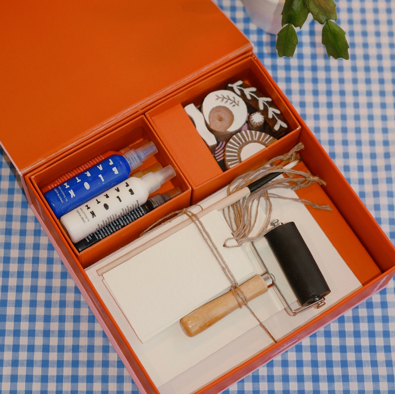 Everything you need to create your own custom block printed stationery! Inside this block printing kit, you’ll find all the tools you need to learn the art of block printing, including hand-carved wooden blocks, handmade paper stationery and five non-toxic block printing inks.No experience necessary - simply follow the easy steps in the guide and take a moment to slow down, get creative and enjoy the process.