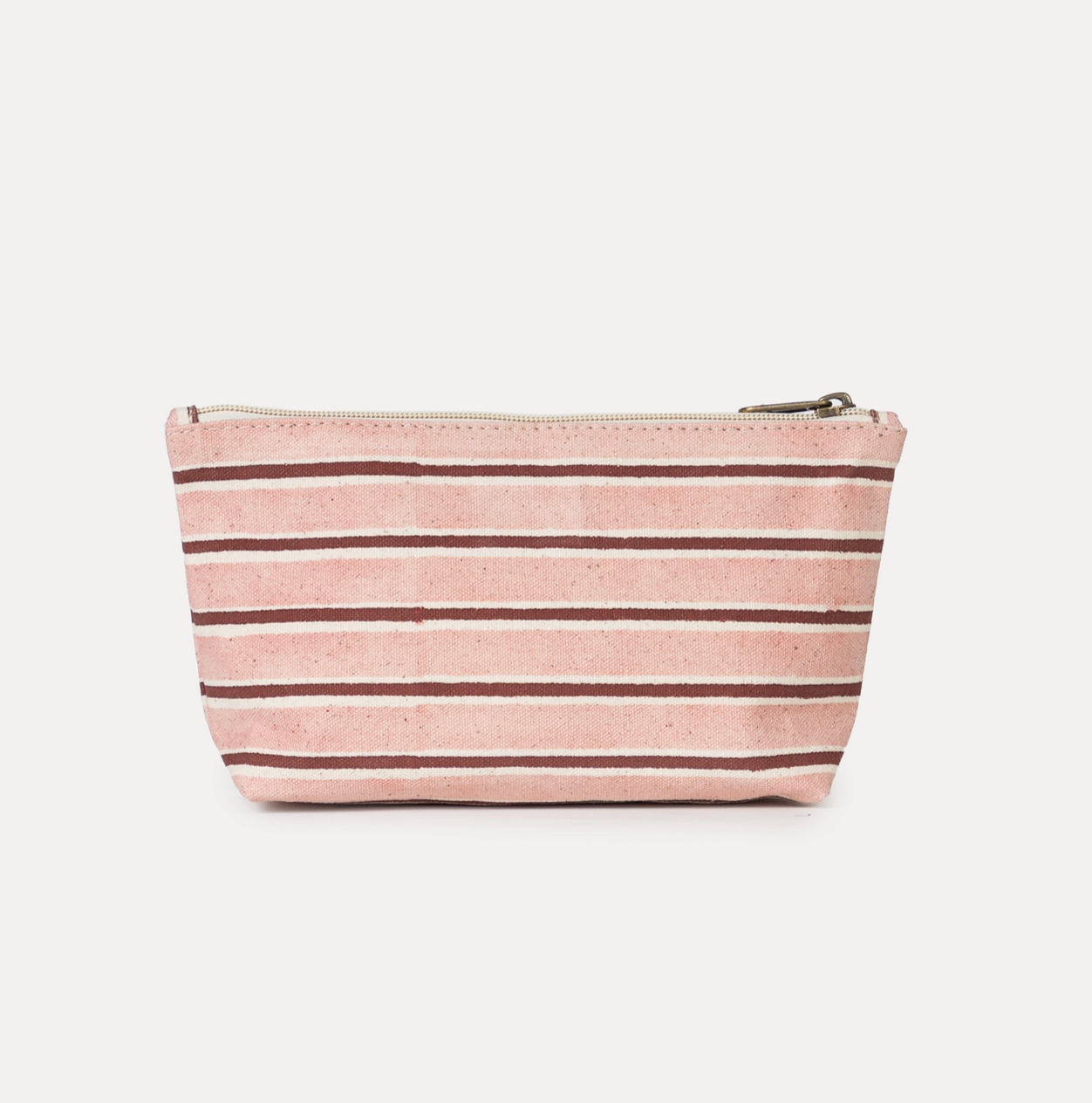 Hand block printed cotton canvas meets waterproof practicality—ideal for make up and coins, earbuds and emergency snacks, or whatever small treasures accompany your day.
